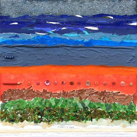 Leila Mariani San Donato Milanese 1970 Ovunque è la risposta 4 2016 collage di materiali di riciclo 50x50 Certificato di autenticità