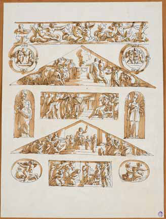 Scuola di Felice Giani Coppia di Studi di Sculture e fregi dall’antico penna...