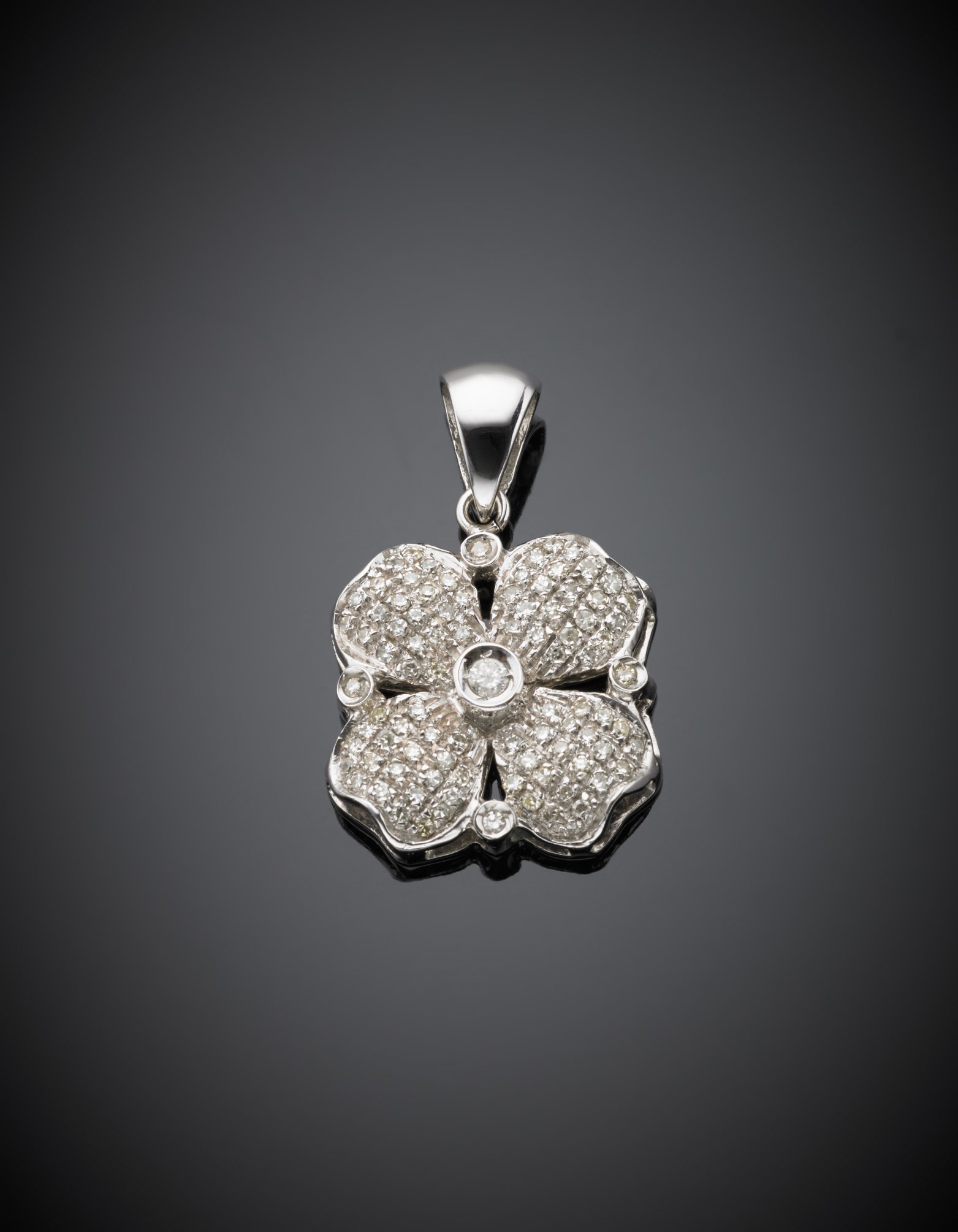 Lotto 58 | Ciondolo a guisa di quadrifoglio in oro bianco e pavè di diamanti, g.9,6,...