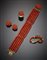 Demi-parure in corallo rosso composta da bracciale a cinque fili, spilla,...