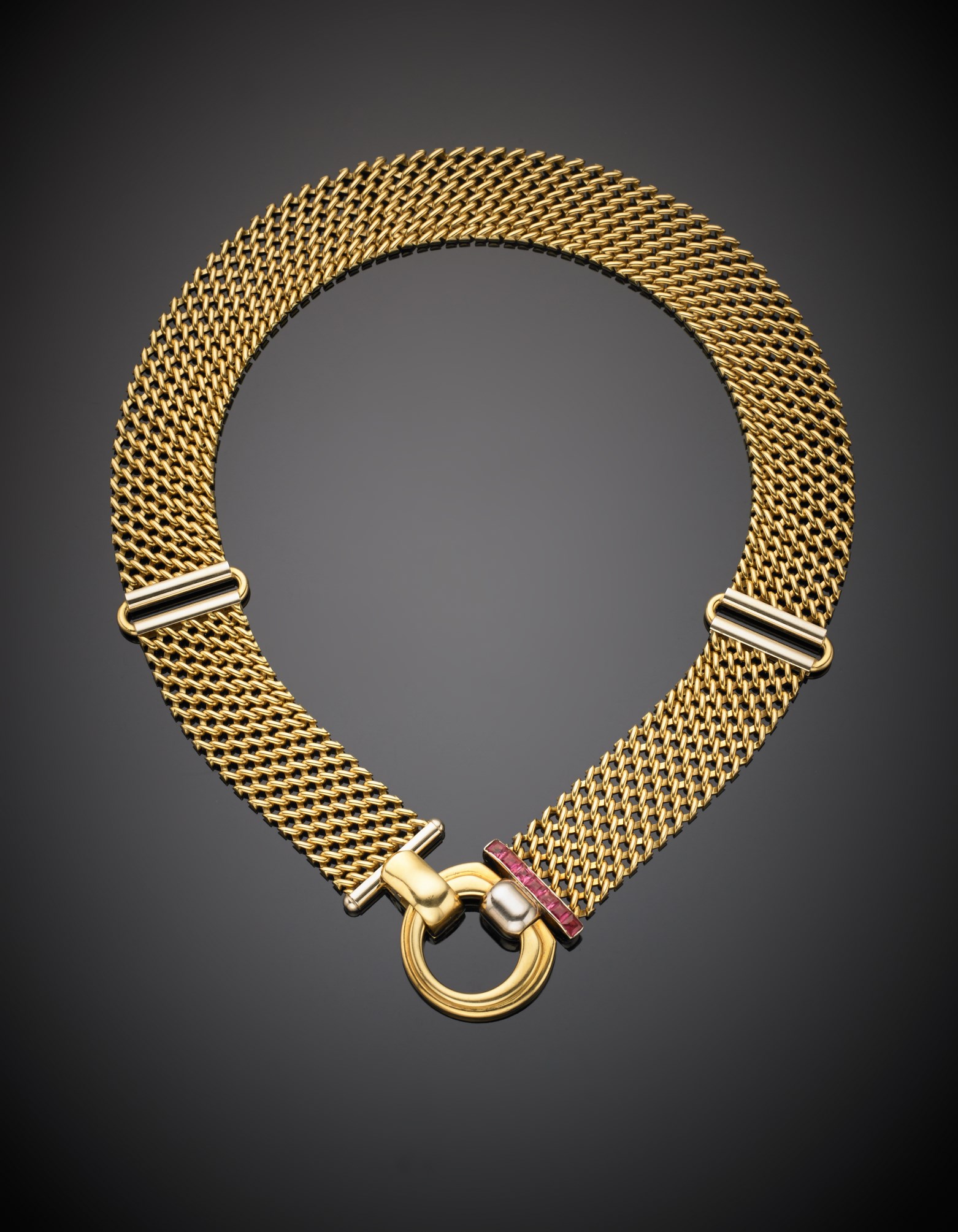 Lotto 93 | SIGNORETTI Collier in oro giallo e bianco con rubini carrè ad adornare la...