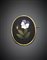 Spilla in oro giallo con mosaico a ricordare le viola del pensiero su onice,...
