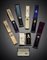 Lotto di otto spilloni da cravatta antichi, in oro giallo, bianco e argento con diamanti e smalti con diverse fogge, in scatole antiche g.26,80 Eight gold and silver tie pins with diamonds and enamel in ancient cases