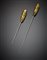 Due spilloni in metallo con cappuccio orientale in oro giallo inciso con...
