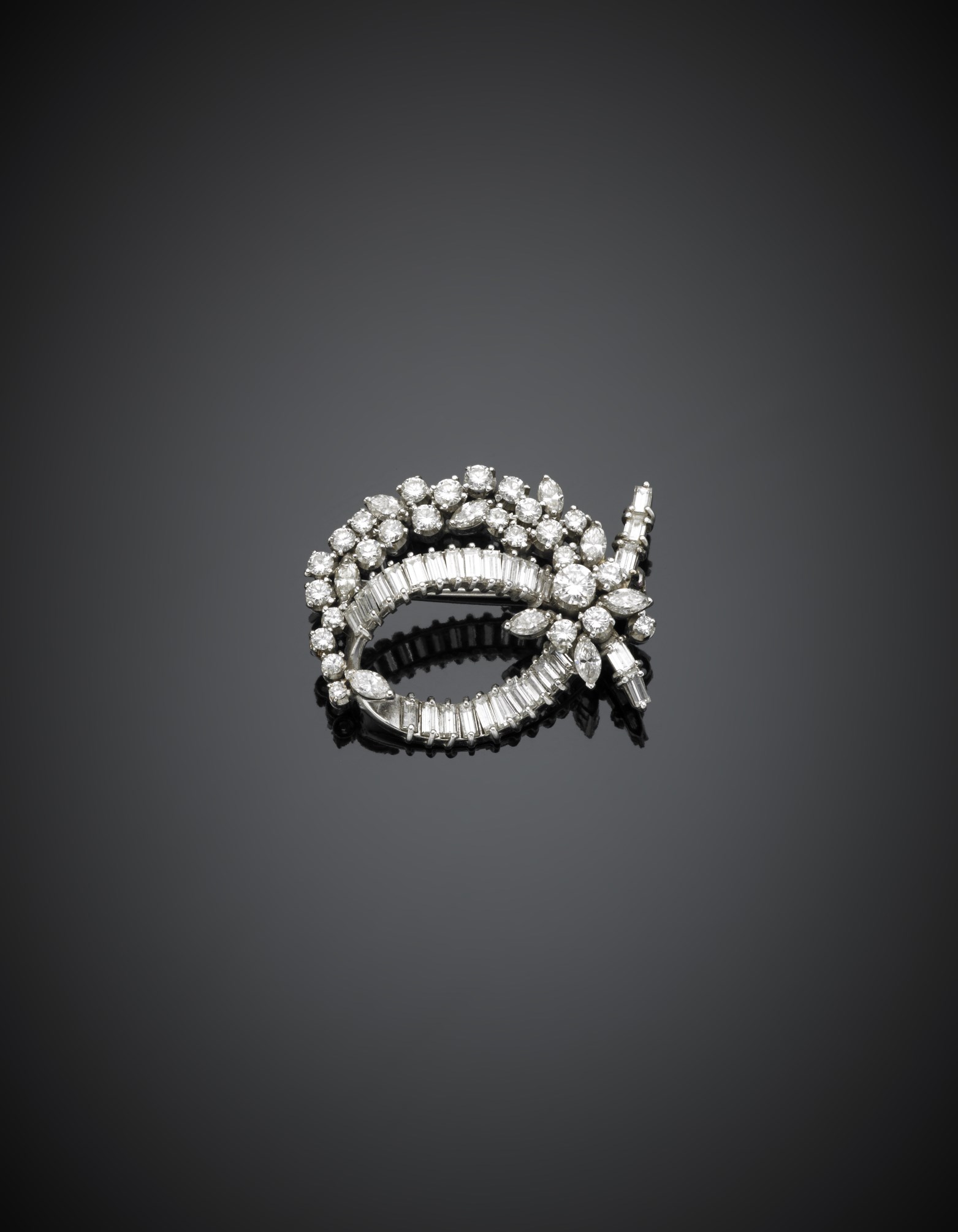 Broche in oro bianco con diamanti rotondi taglio a brillante, navette,...