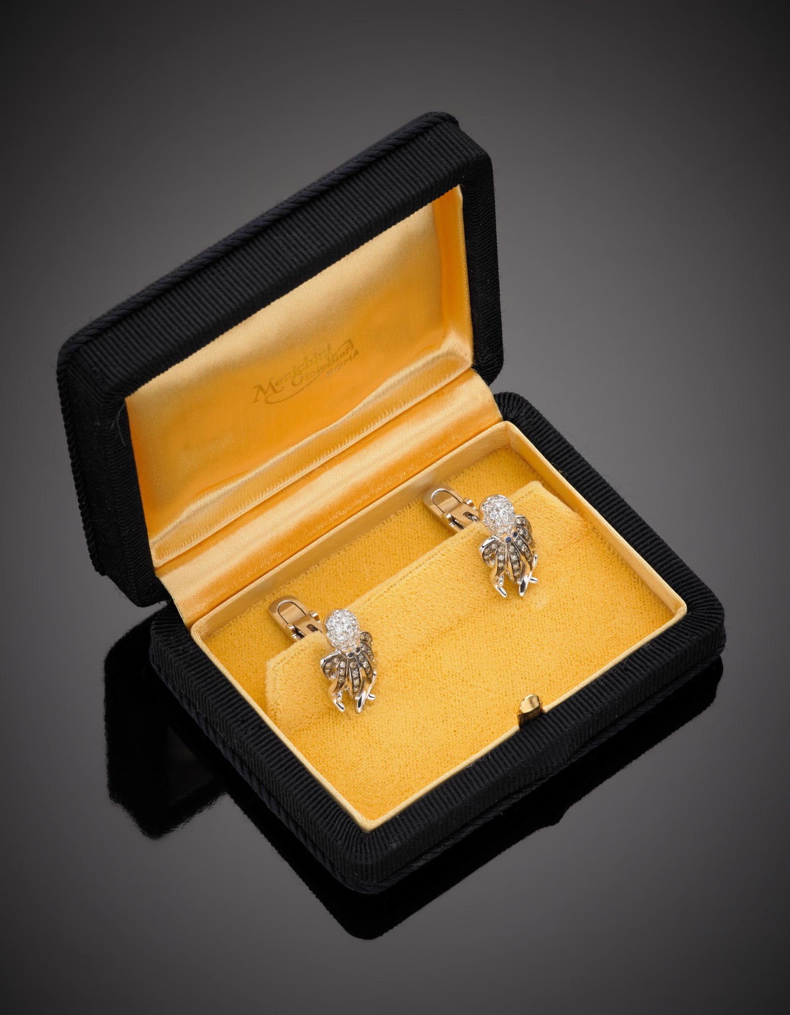 MASKADA Gemelli in oro bianco e rodiato nero a forma di polipetti con pavè di...
