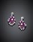 Orecchini pendenti in oro bianco, diamanti e rubini a guisa di fiore, g.13,50...