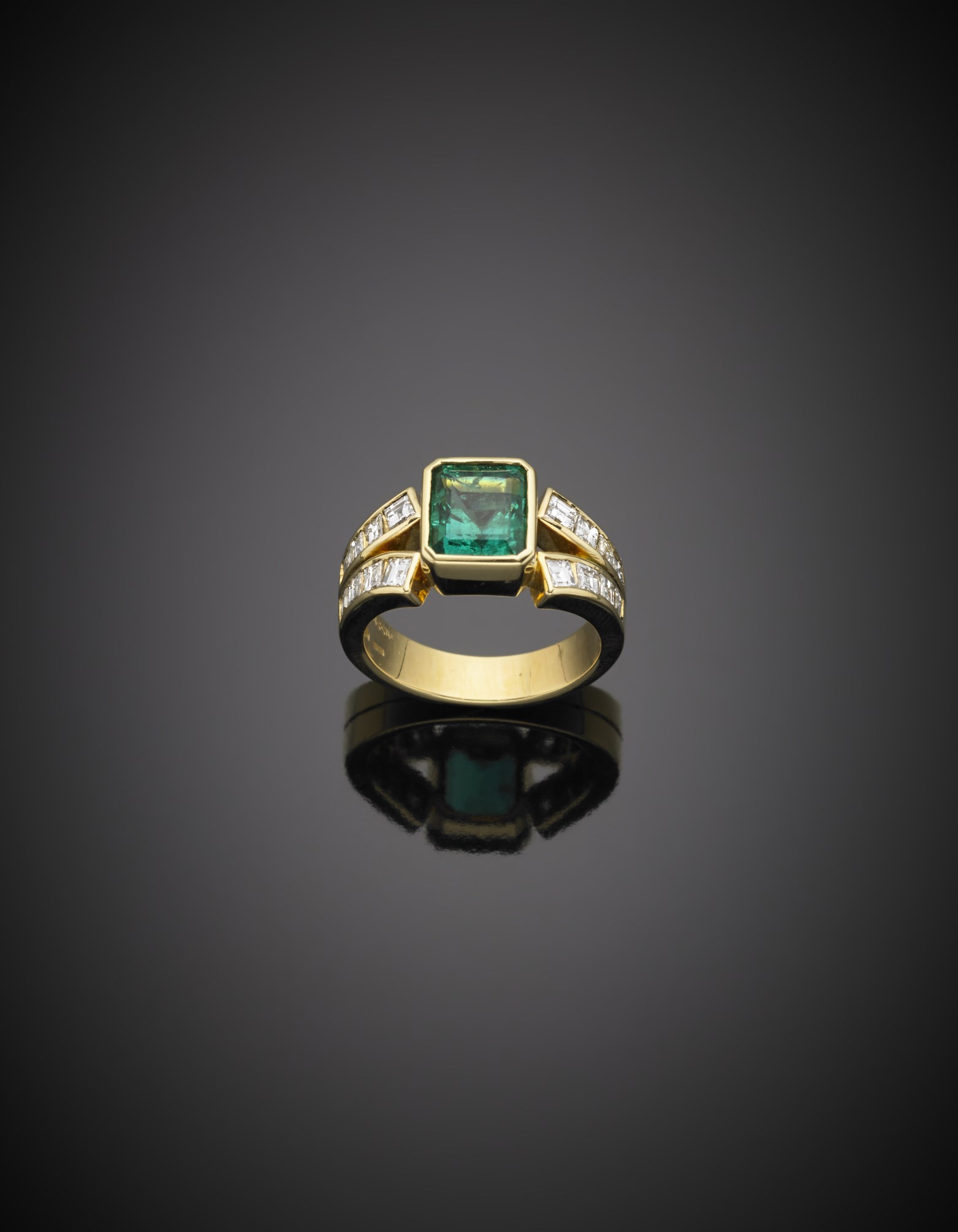 MISSIAGLIA Anello in oro giallo con diamanti ed al centro uno smeraldo MISSIAGLIA Yellow gold emerald and diamond ring