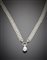 Collana con microperle, con pendente una perla naturale bianca di acqua salata di mm 14,80x10,47 circa rifinita con diamanti tra i quali un ovale di ct 0,59 circa, g. 17,50, lungh. cm 55,5 circa Accompagnato da certificato gemmologico ANCHOR CERT n. 20017652 Birmingham del 10/07/2014 Micro-pearl mesh necklace with diamond and pearl clasp