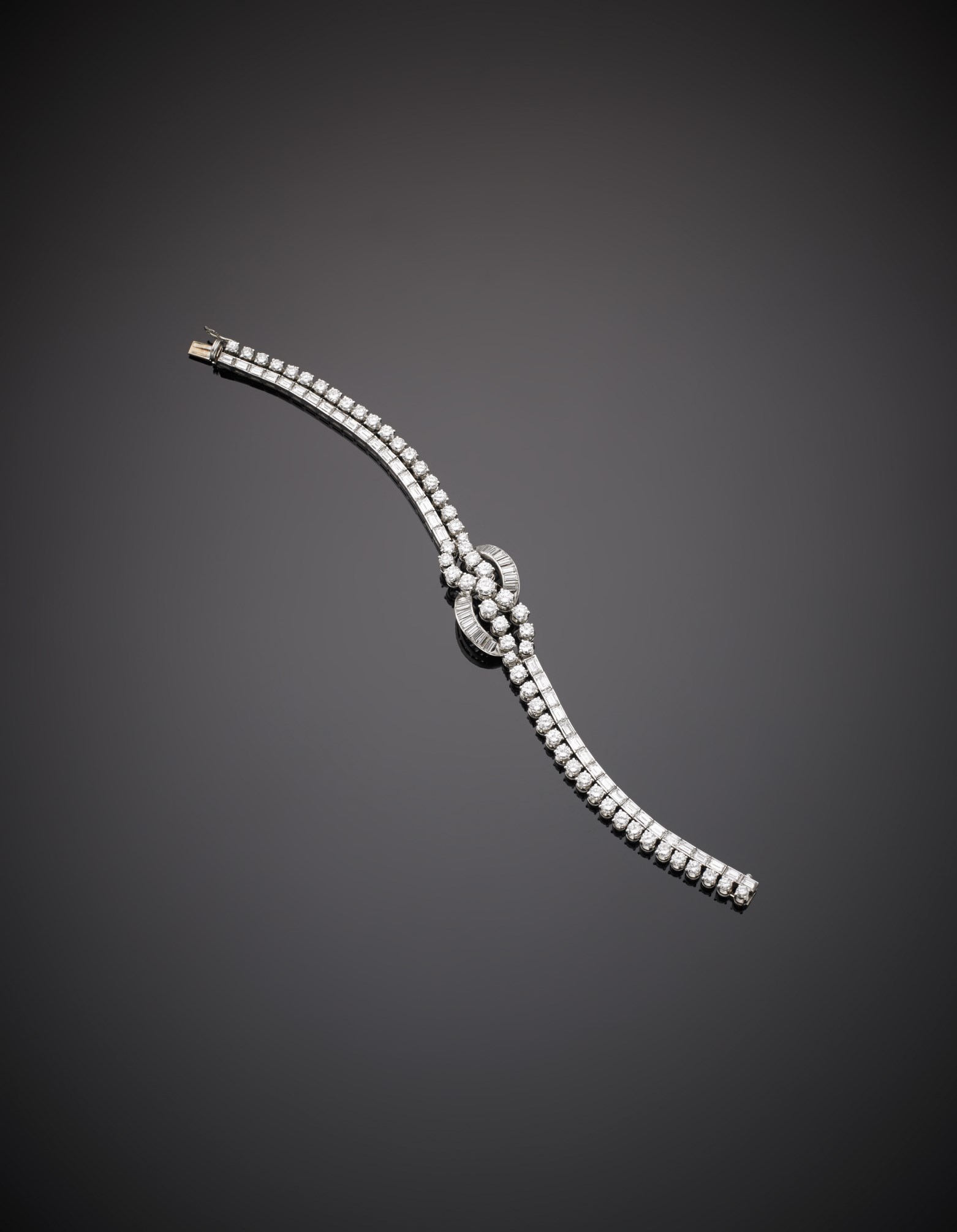 Bracciale in oro bianco con diamanti rotondi, a baguette e tapered g. 25,90, lungh. cm 17 A white gold and diamond ring