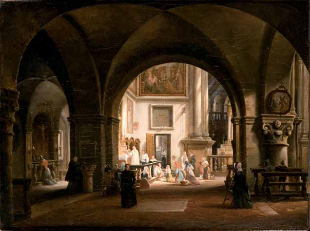 Giovanni Migliara Alessandria 1785 – Milano 1837 Interno di chiesa olio su...