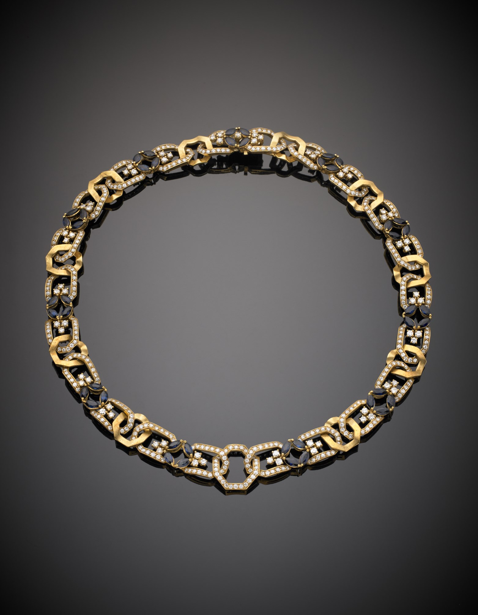Lotto 261 | Collier in oro giallo e bianco con diamanti rotondi e zaffiri a navette g....