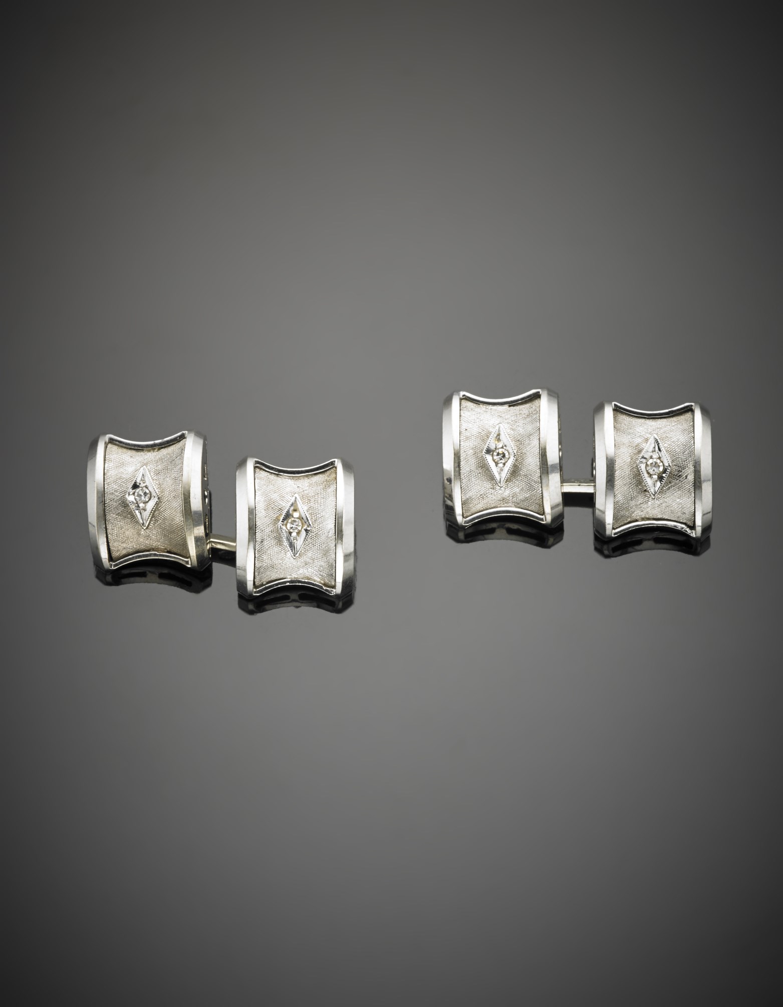 ZENDRINI Gemelli oro bianco lucido e satinato con diamanti, g. 9,80. In...