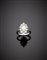 Anello in oro bianco con diamante centrale di forma navette di ct. 1,10 circa, contornato da diamanti rotondi, g. 5,1, misura 14/54 Diamond and diamond white gold cluster ring