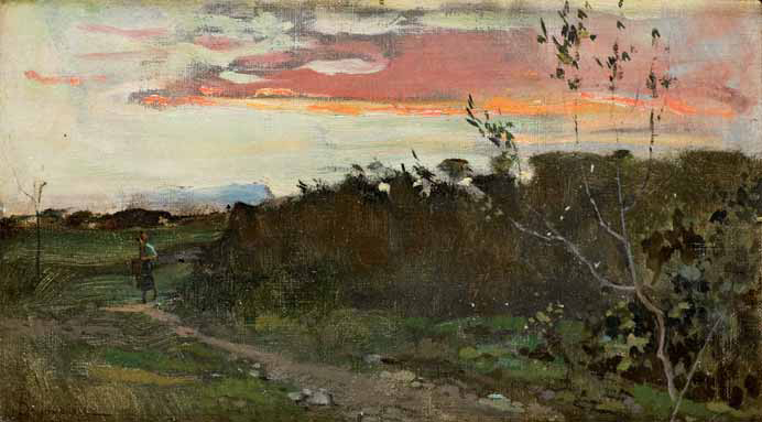 Telemaco Signorini Firenze 1835 – 1901 Paesaggio a Vinci olio su tela applicata su tavola, cm 11,5x20,5. Firmato in basso a sinistra: T Signorini Al retro dichiarazione di autenticità firmata da Piero Dini. Provenienza: Montecatini Terme, Galleria Bentivegna (timbro al retro)