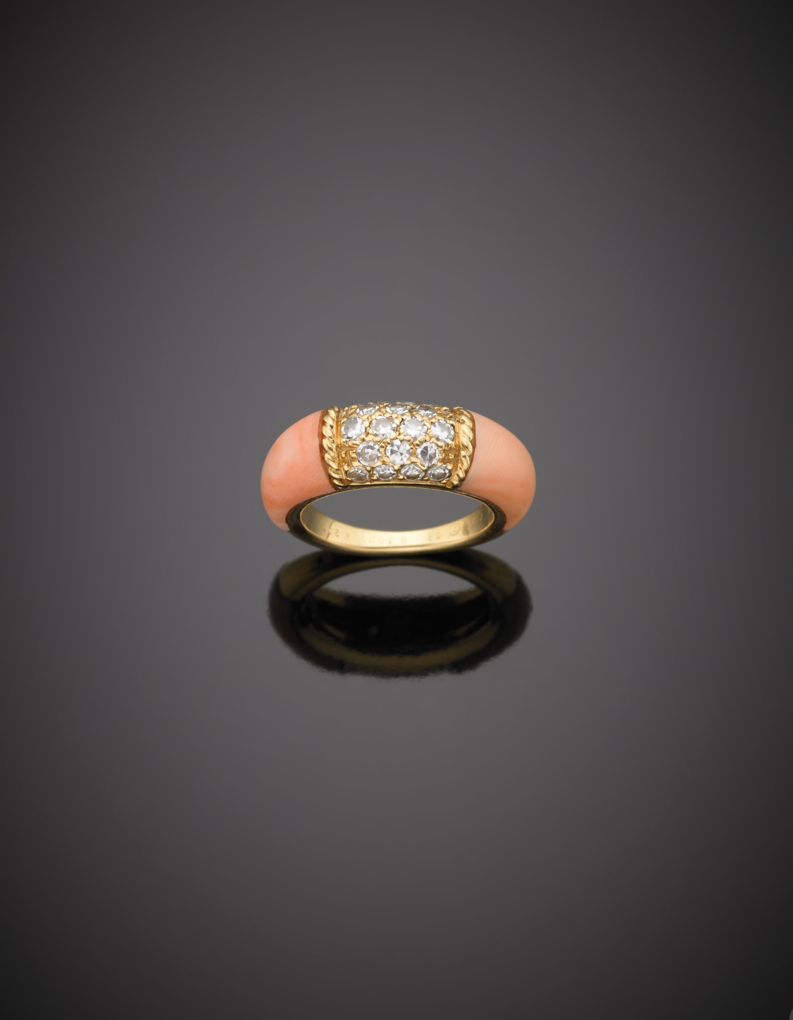 VAN CLEEF & ARPELS Anello in oro giallo, corallo rosa e diamanti, punzonato...