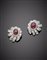 VAN CLEEF & ARPELS Orecchini in platino, con clips in oro bianco, diamanti rotondi e carrè, a forma di fiore con al centro due rubini cabochon di complessivi ct 12 circa, g. 33,30, misura cm 3x3 cm circa. Punzonati con marchio e n. 6467. VAN CLEEF & ARPELS Platinum and white gold diamond set earclips centered by cabochon rubies