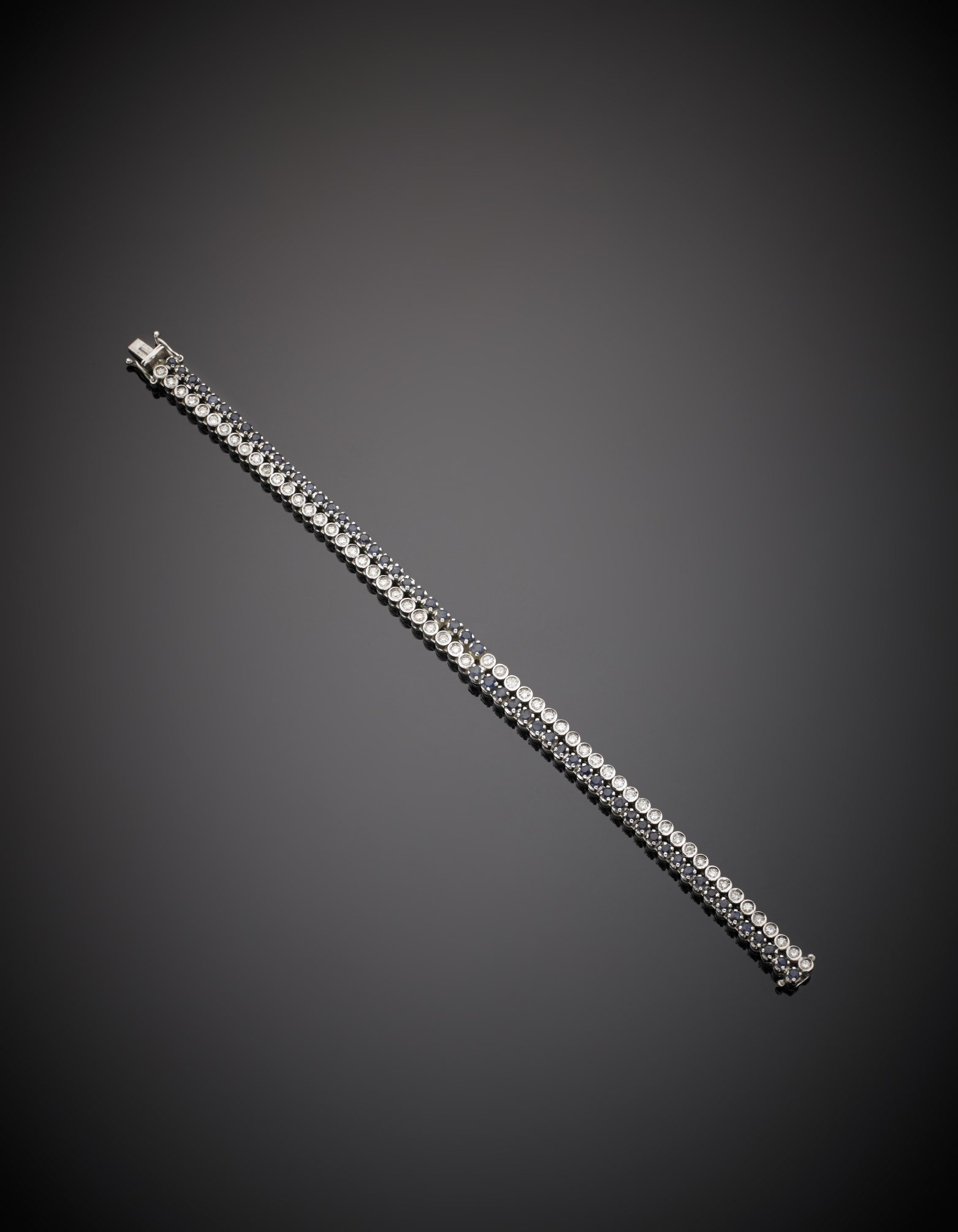 Bracciale in oro bianco diamanti e zaffiri, g. 22,60, lungh. cm 16 circa A sapphire and diamond white gold bracelet