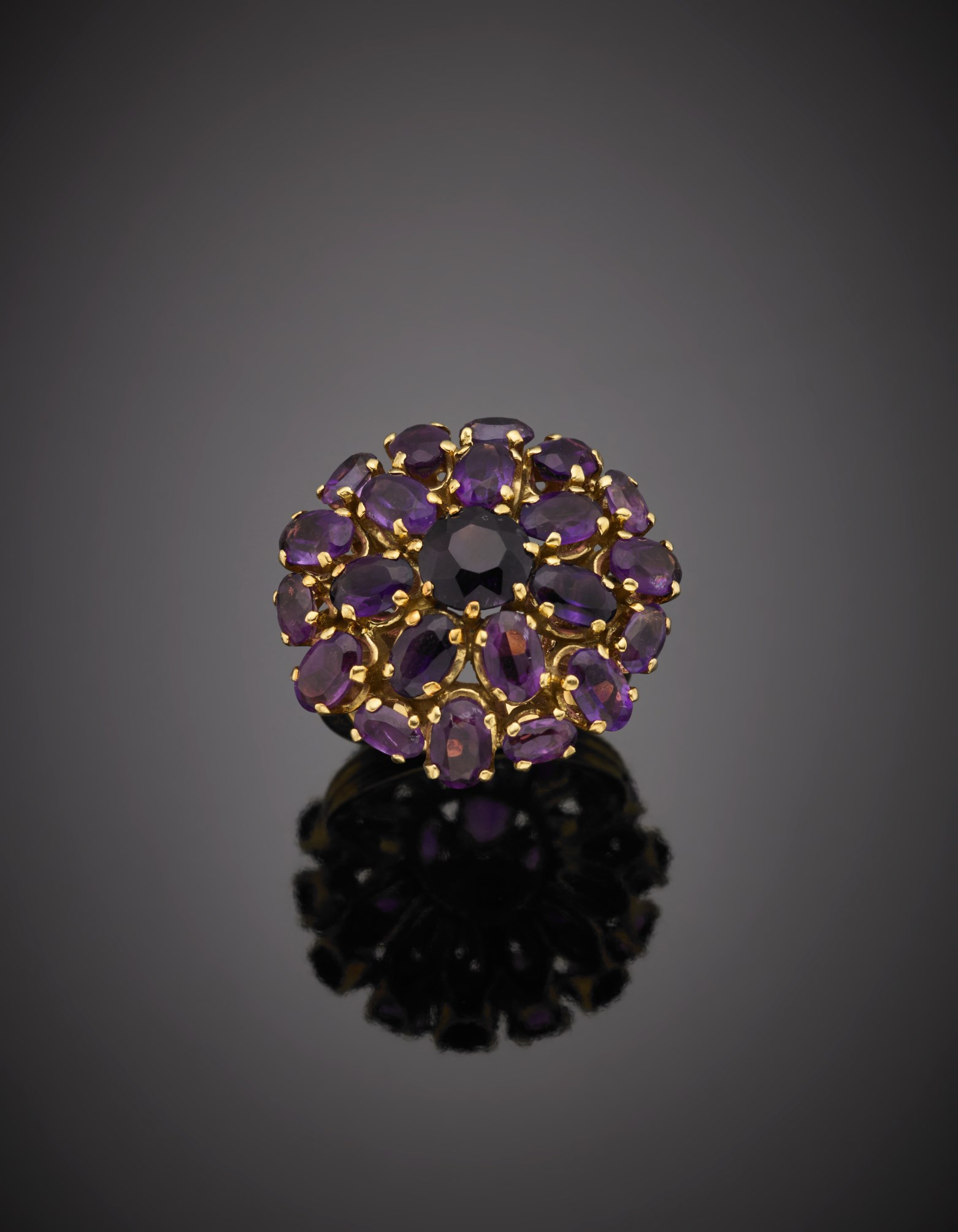 Anello in oro giallo con ametiste ovali g. 13,10 misura 15/55 Amethyst and...