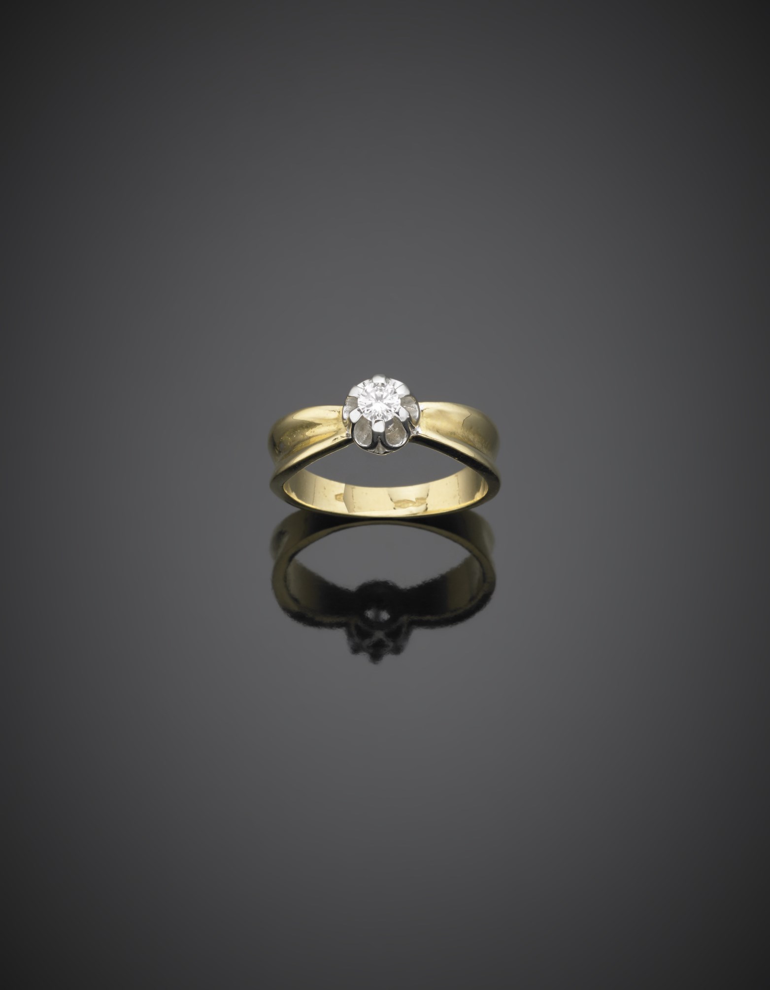 Anello in oro bianco e giallo con diamante solitario, g. 5,60 misura 16/56 Bi-coloured gold diamond ring