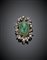 Spilla in oro giallo e argento con smeraldo cabochon di ct. 24,00 circa e...