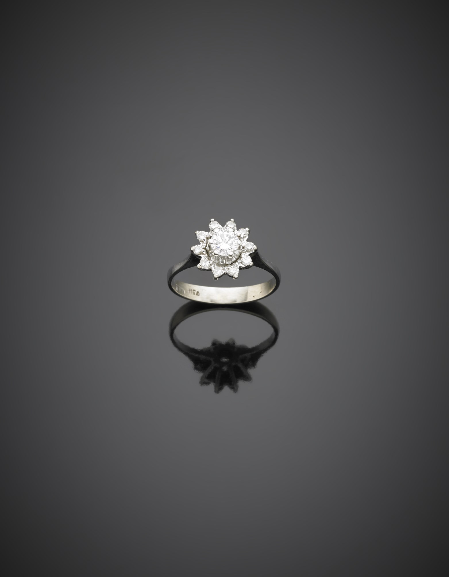Anello in oro bianco, con margherita di diamanti g.2,80 misura 10/50 White gold diamond ring
