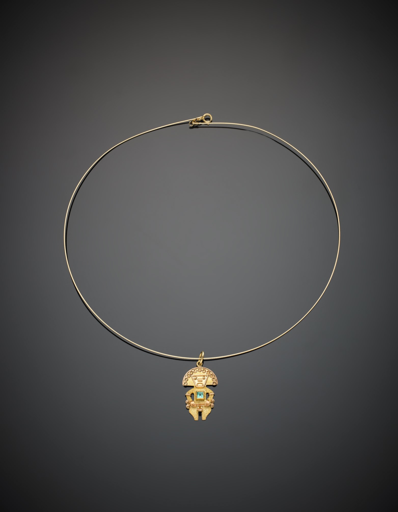 Lotto 460 | Collier rigido con pendente in stile precolombiano in oro giallo con...