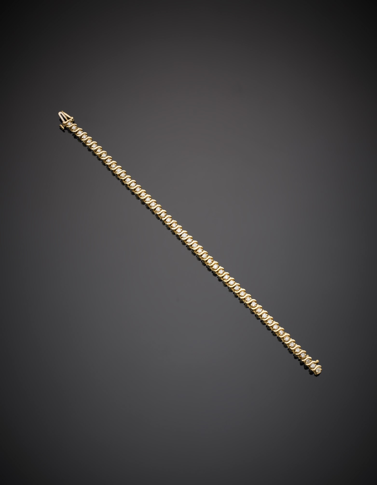 Bracciale tennis in oro giallo e diamanti g.13,40 lungh. cm 18,2 circa Yellow gold diamond bracelet