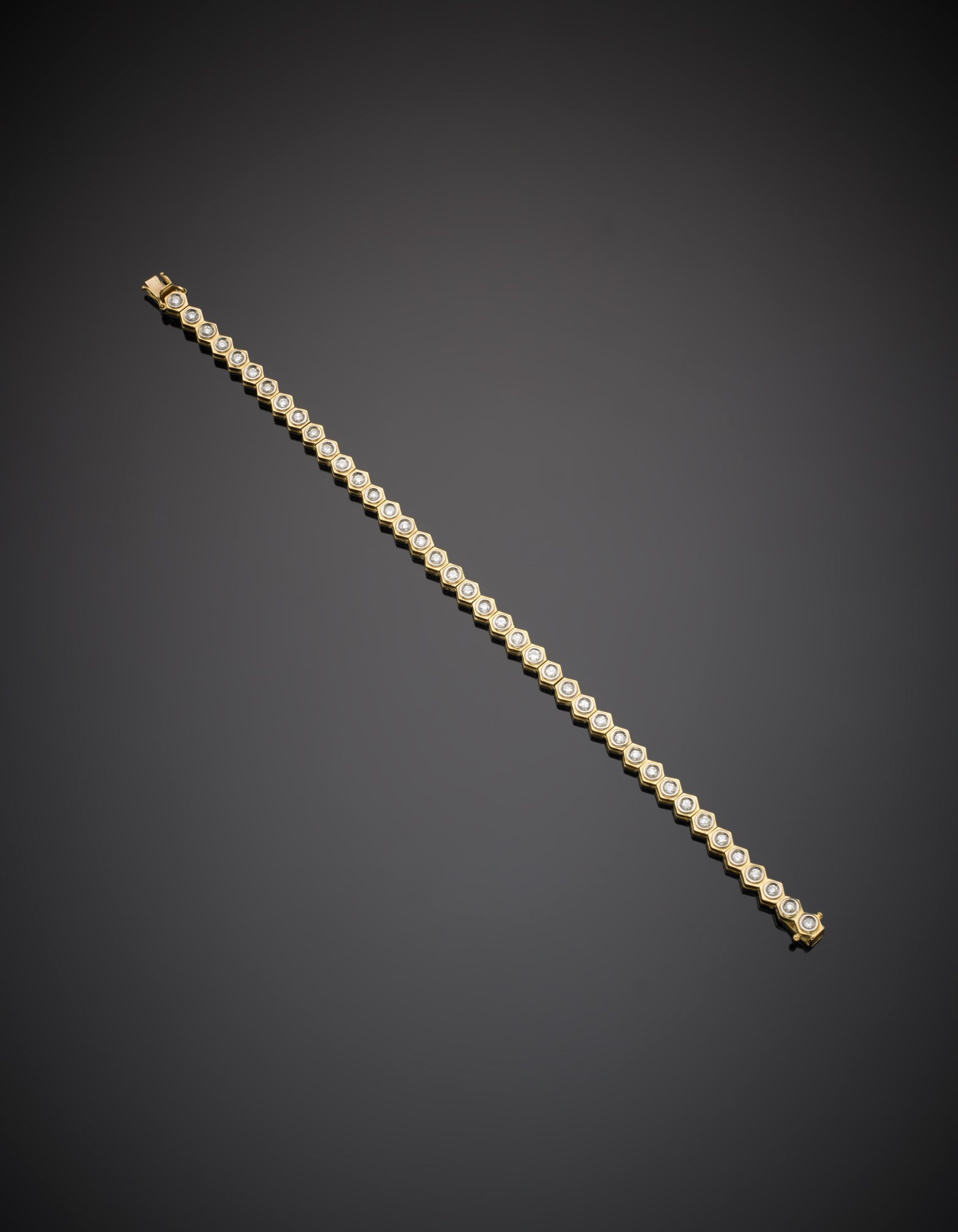 Lotto 468 | Bracciale tennis in oro giallo e diamanti g.18,40 lungh. cm 18,6 circa Yellow...