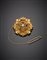 Spilla inglese rotonda con portafoto in oro giallo rossastro 333/1000, rubini...