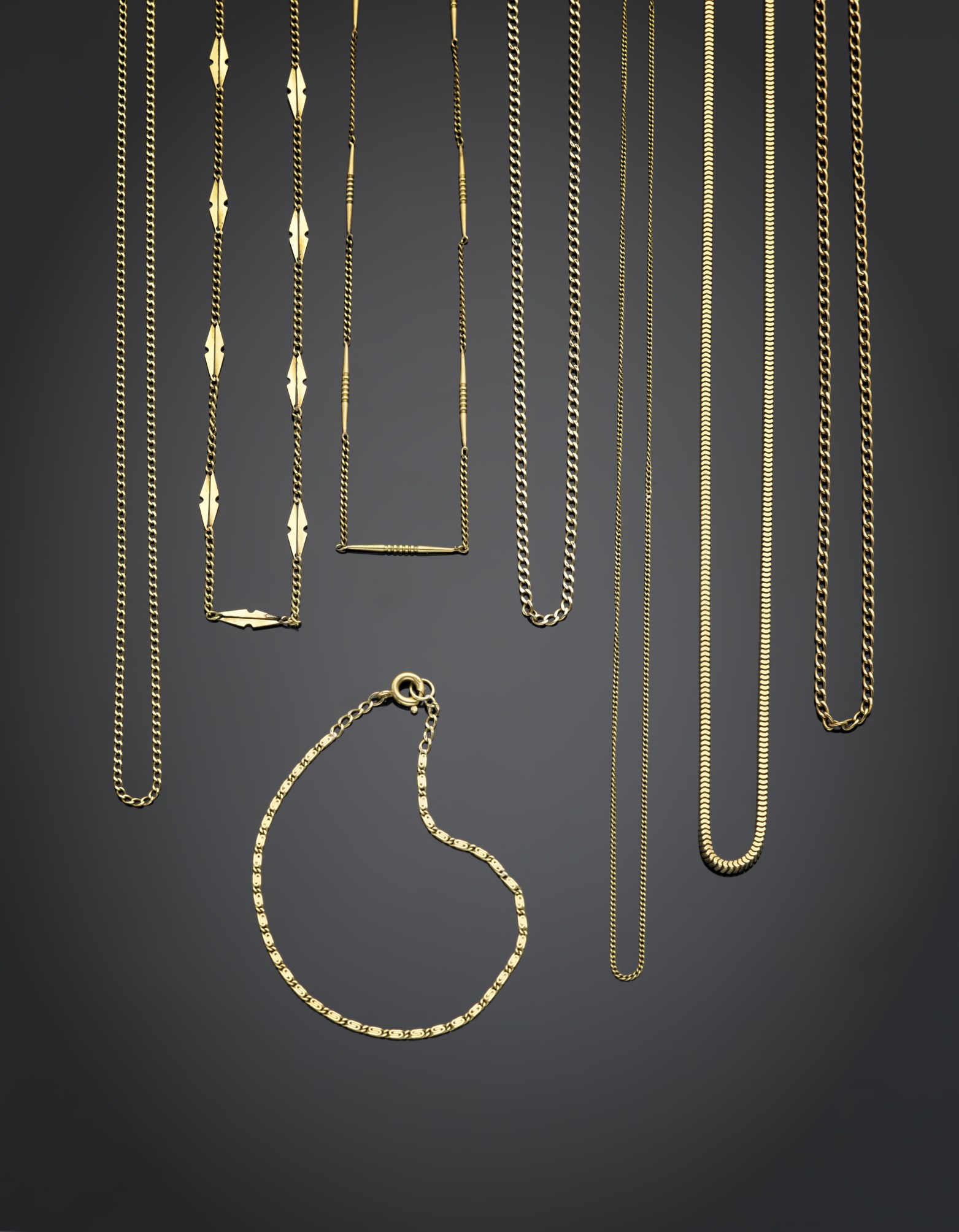 Lotto 544 | Lotto composto da sette collanine e un bracciale a catena, in oro giallo, g....