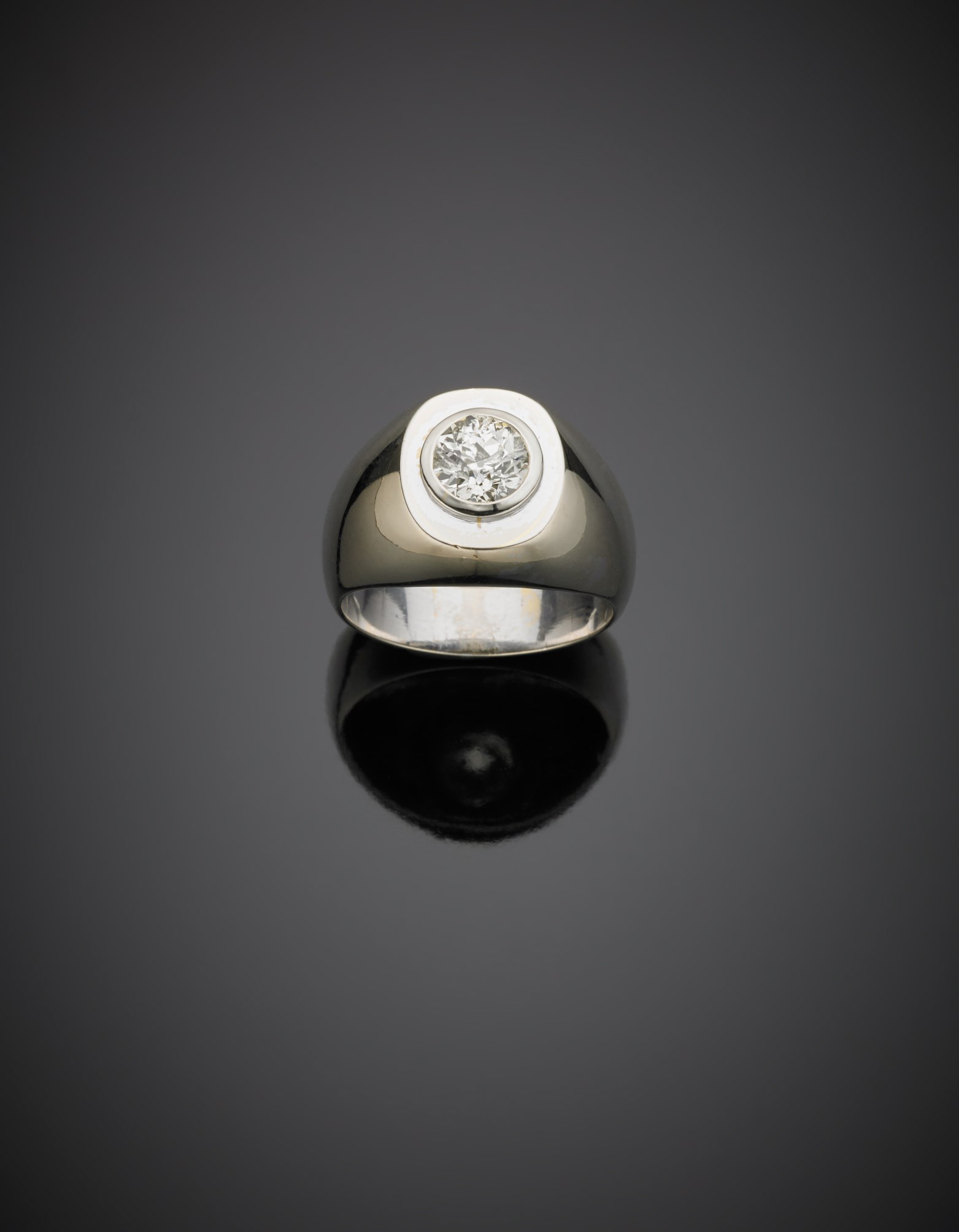 Anello in oro bianco a fascia con diamante solitario ct.1,20 circa g.13,50 misura 21/61 White gold and diamond ring