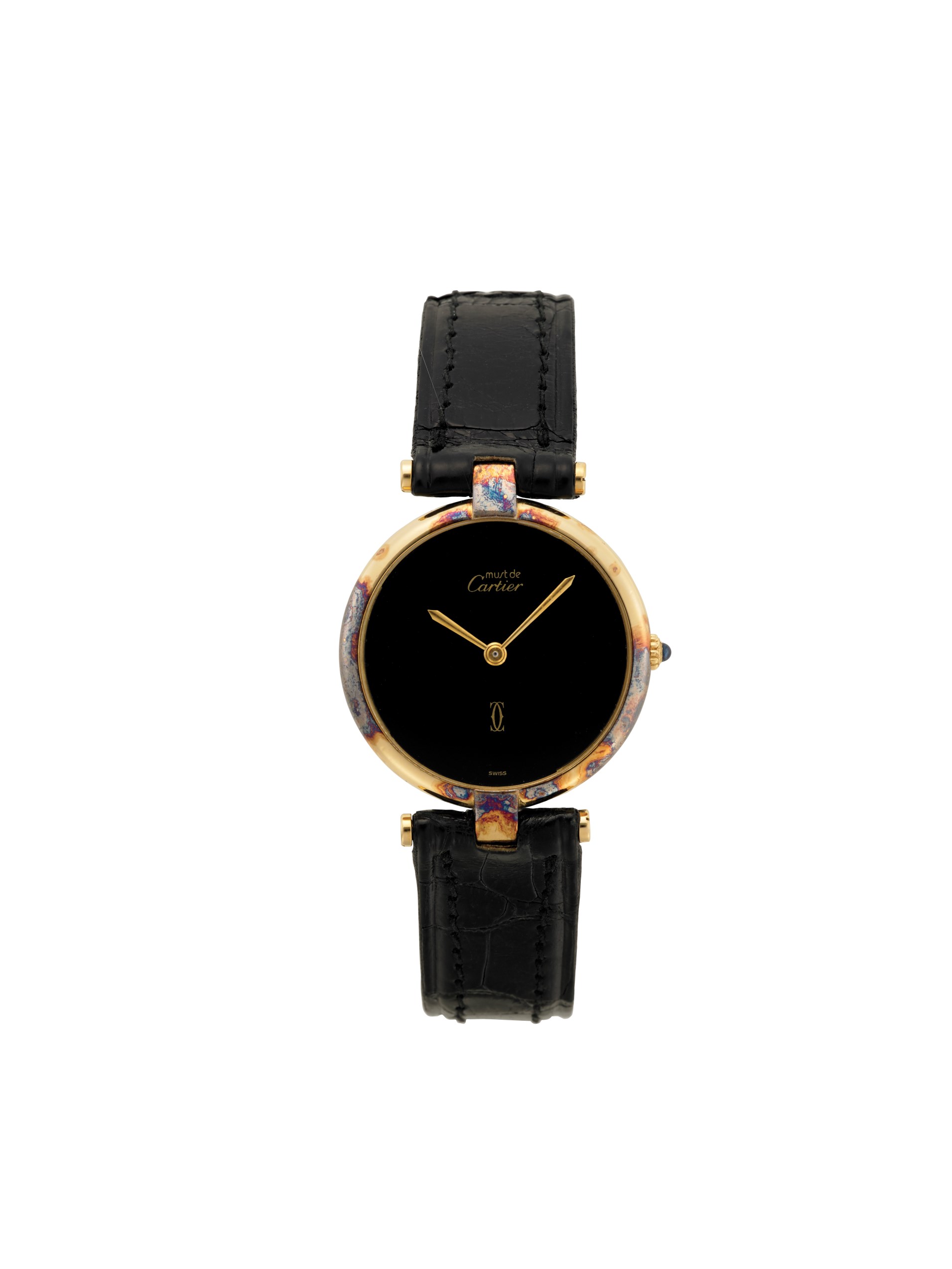CARTIER Orologio da polso da uomo in argento placcato oro Fine anni '80,...