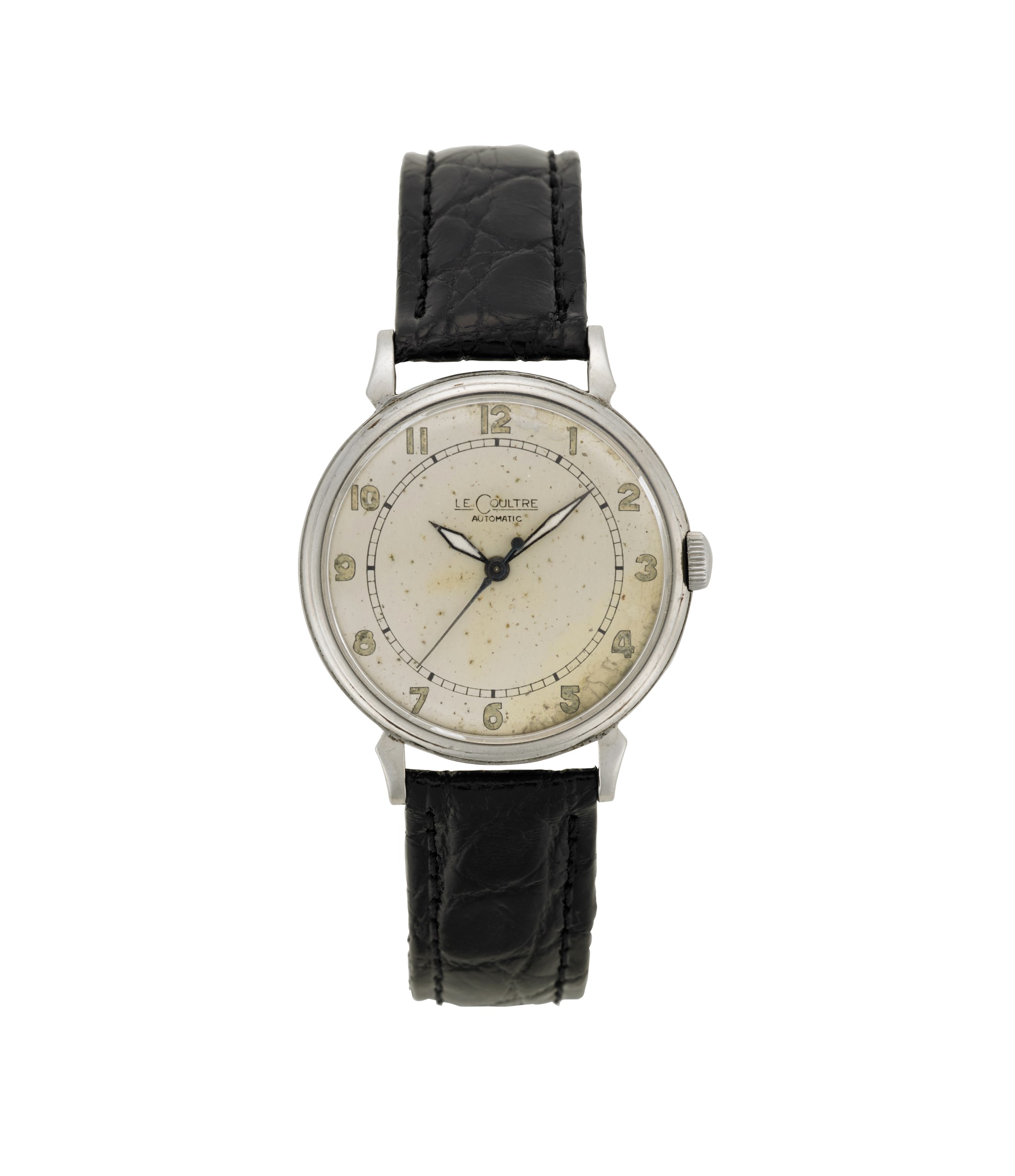 LECOULTRE Orologio da polso da uomo in acciaio Anni '50/'60 Quadrante, movimento e cassa firmati Movimento con carica automatica Quadrante argentato con cifre arabe, secondi al centro (probabile ristampa) Cassa n. 473816 Diam. mm 34 LECOULTRE gent's steel wristwatch 1950s/1960s circa Dial, movement and case signed Automatic wind movement Silvered dial with Arabic numerals Diam. mm 34 (Probably reprinted)