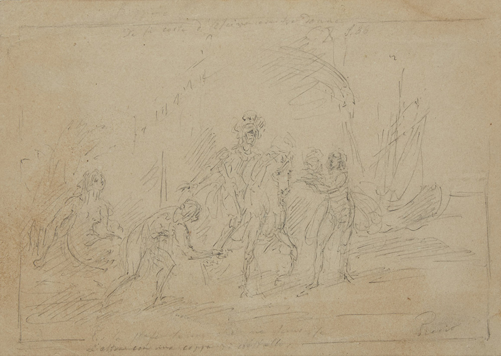 Giovanni Carnovali detto il Piccio (Montegrino Valtravaglia 1804 - Coltaro 1873) (Attribuito) "Studio" disegno su carta (cm 12x17.5) Reca firma in basso a destra; iscritto in alto e basso In cornice