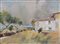 Giuseppe Casciaro (Ortelle 1861 - Napoli 1945) "Paesaggio con casolare" tecnica mista su carta (cm 30x40) Firmato in basso a destra (difetti) In cornice