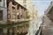 Carlo Savorgnani (XX Secolo ) "Scorcio con Naviglio" olio su cartone telato (cm 23.5x34.5) Firmato in basso a destra In cornice