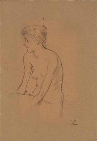 Federico Zandomeneghi (Venezia 1841 - Parigi 1917) "Nudo femminile" disegno su carta applicata a tela (cm 26x18) Siglato in basso a destra Si ringrazia Roberto Capitani per aver dato parere favorevole In cornice