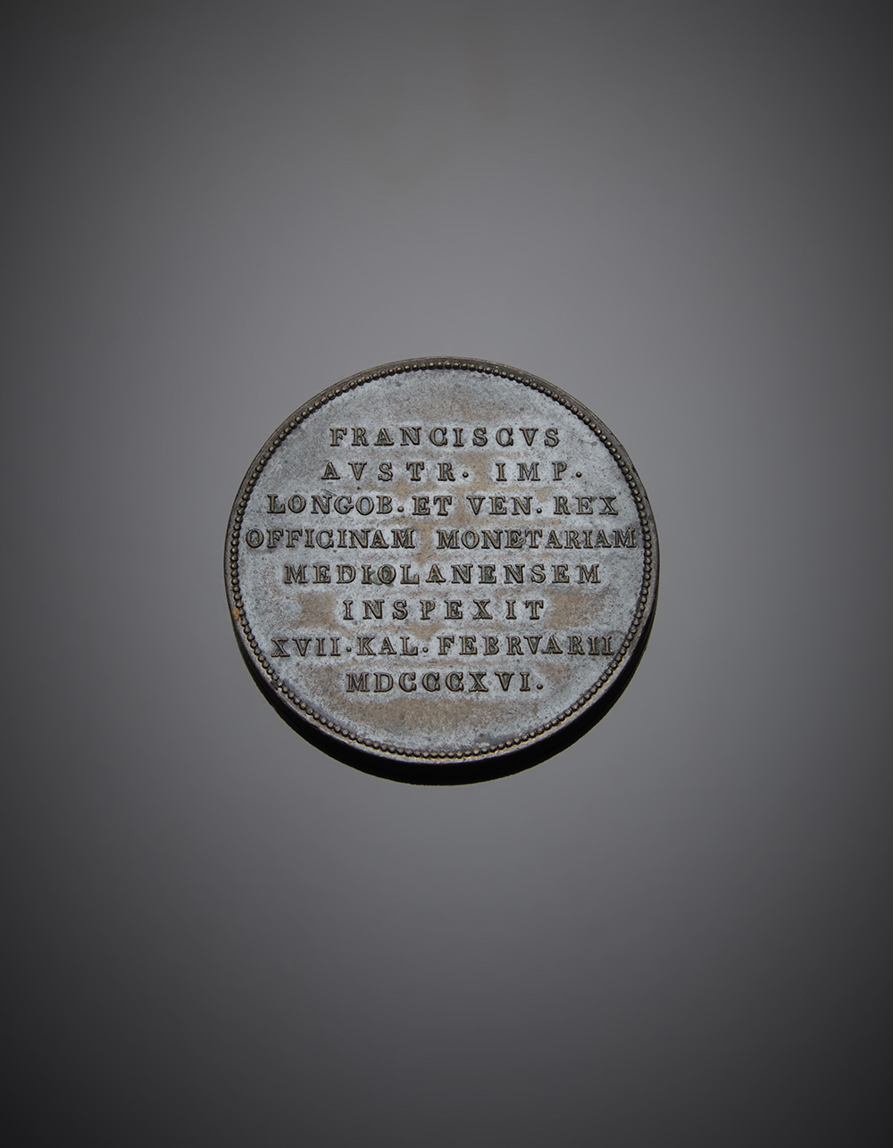 MILANO. Francesco I d'Austria (1815.1835). Medaglia 1816 per la visita alla zecca. AE, mm. 37. Colpo e segnetti sul bordo, pi˘ di SPL