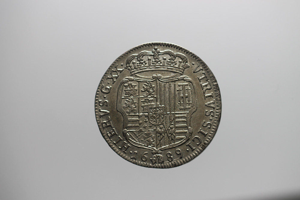 NAPOLI. Carlo II di Spagna (1674-1700). TarÏ 1689. MIR 299/2. AG. qSPL/SPL