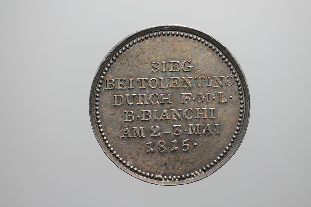 Lotto 1138 | NAPOLI. Tolentino 1815. Piccola medaglia in argento (mm. 18,6) per la...
