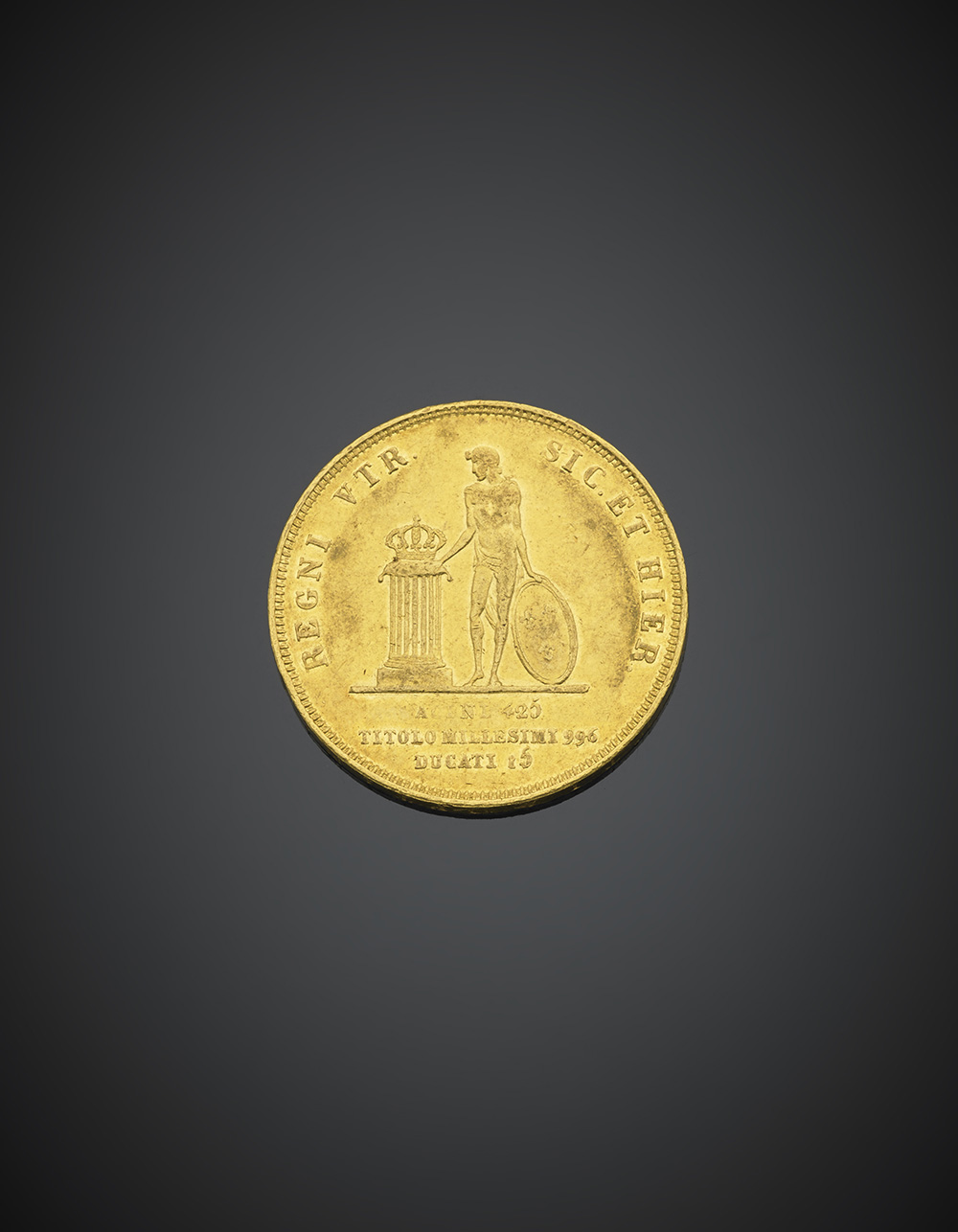 NAPOLI. Ferdinando II di Borbone (1830-1859). Da 15 ducati 1831. Pagani 147. Oro. Molto rara. qSPL