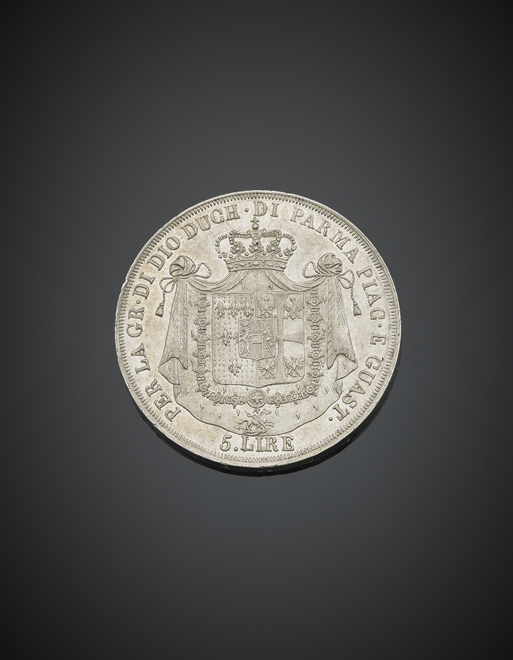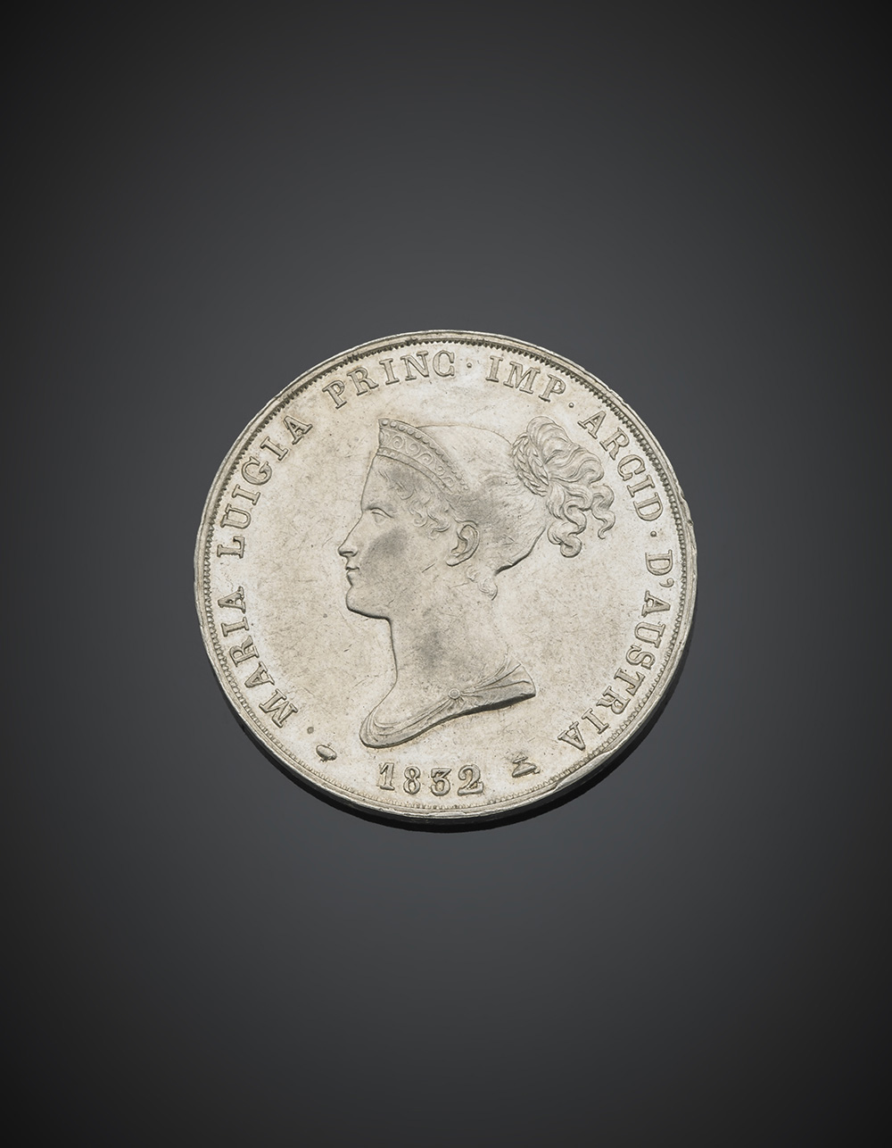 PARMA. Maria Luigia (1815-1847). Da 5 lire 1832. Pagani 7. AG. Molto rara. qSPL/SPL