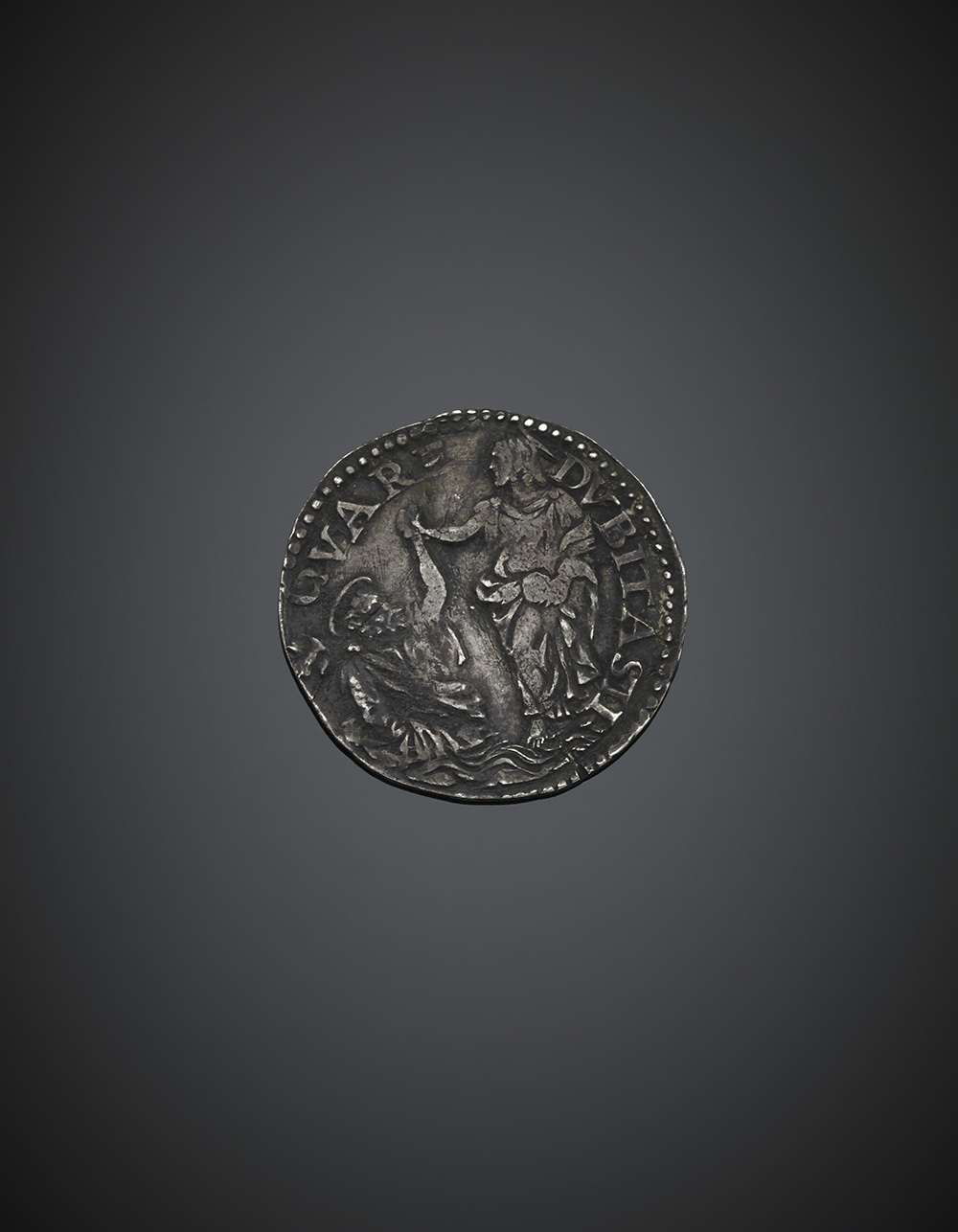 ROMA. Clemente VII (1523-1534), Doppio carlino con busto a d. e, al R/, Ges˘ che solleva S. Pietro dall'acqua. Muntoni 43. AG. Raro. Lieve debolezza di conio. qSPL
