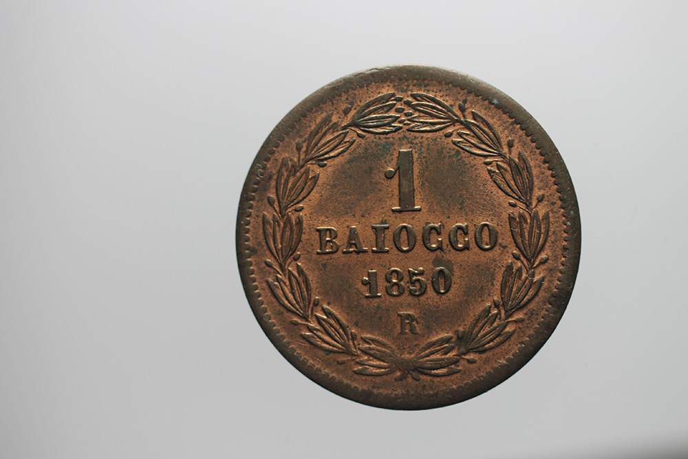 ROMA. Pio IX (2∞ periodo, 1849-1866). Un baiocco 1850/V. Pagani 503a. CU. qFDC