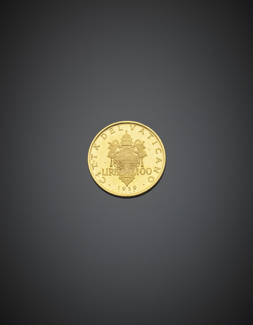 Lotto 1172 | ROMA. Giovanni XXIII (1958-1963). Da 100 lire 1959. Pagani 866. Oro. FDC