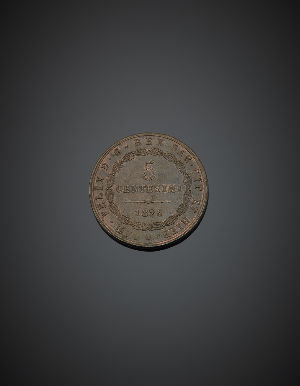 SAVOIA. Carlo Felice (1828-1831). Da 5 centesimi 1826 Torino/L. Pagani 127....