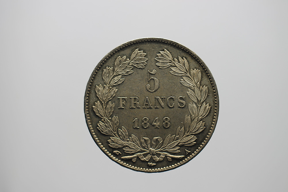FRANCIA. Luigi Filippo (1830-1848). Da 5 franchi 1848/A. KM 749/1. AG. Lievi segnetti da contatto. FDC