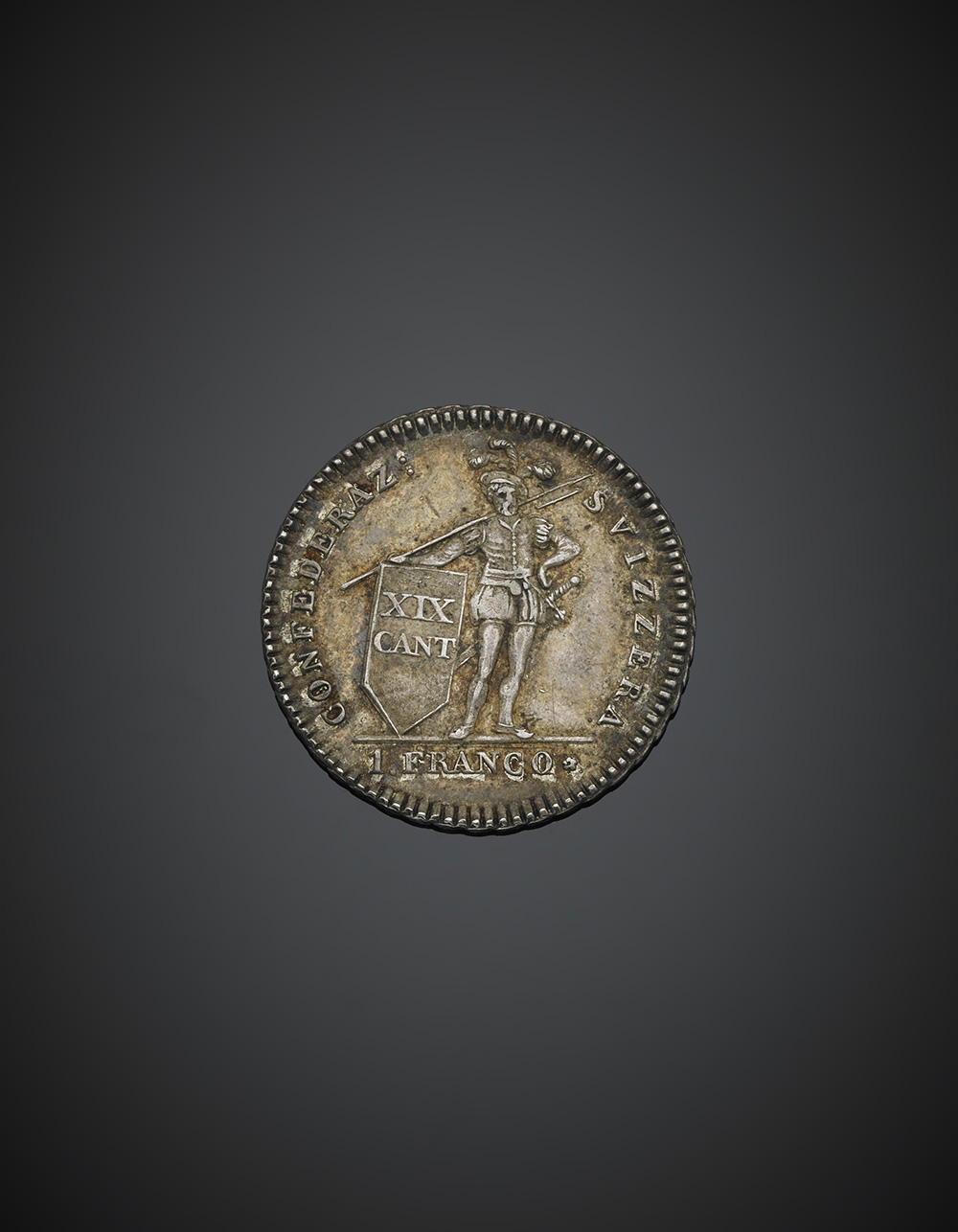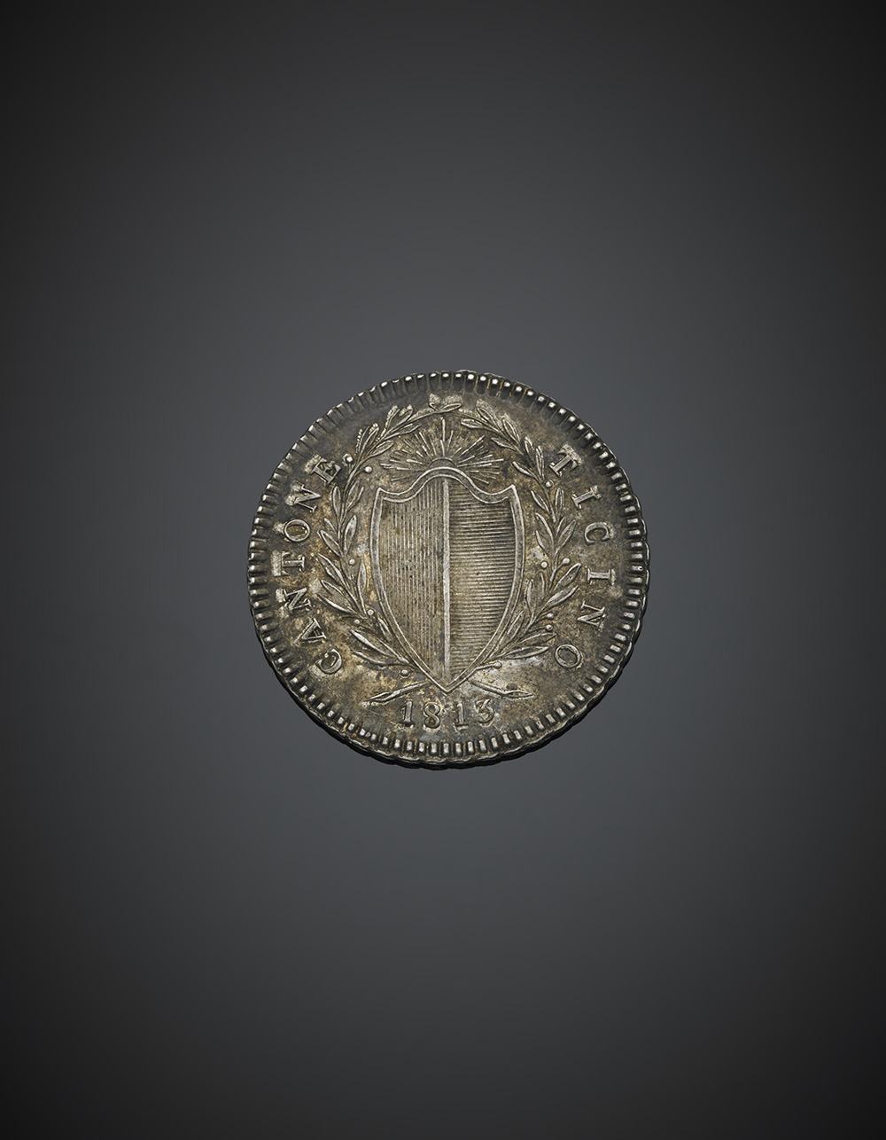 SVIZZERA. Canton Ticino. Un franco 1813. KM 3. AG. Raro. Piacevole patina. SPL/qSPL