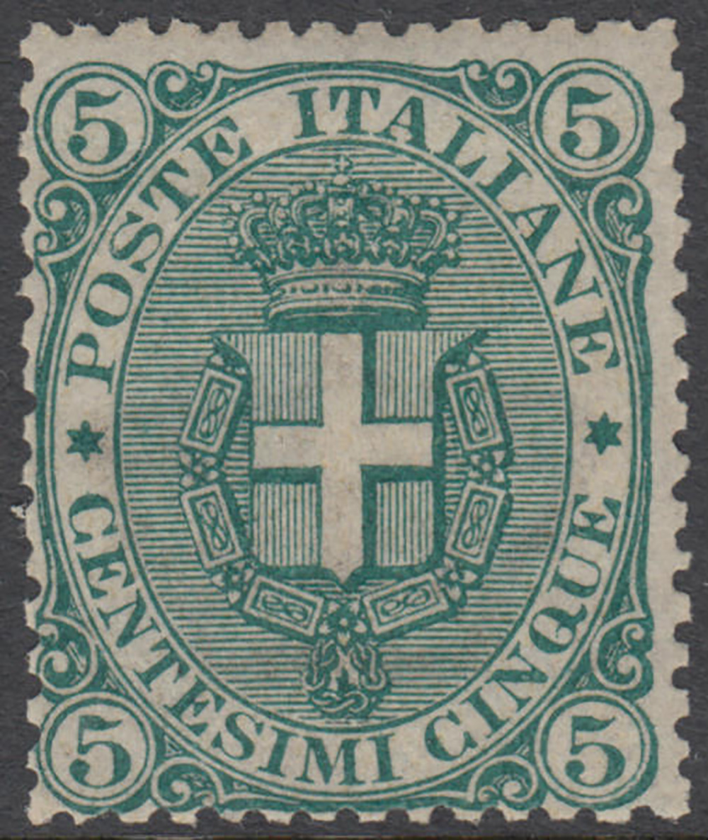 [REGNO D'ITALIA] 1891 "Stemma", 5c. verde. G. Oliva MNH..........(Sass. 59)